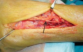 A 35-year-old man sustained a 1-inch stab incision in his proximal forearm while trying to use a screwdriver 2 weeks ago. The laceration was routinely closed, and no problems about the incision site were noted. He now reports that he has been unable to straighten his fingers or thumb completely since the injury. Clinical photographs shown in Figures 30a and 30b show the man passively flexing the wrist. What is the most appropriate management? ](http://www.orthobullets.com/anatomy/10104/posterior-interosseous-nerve)