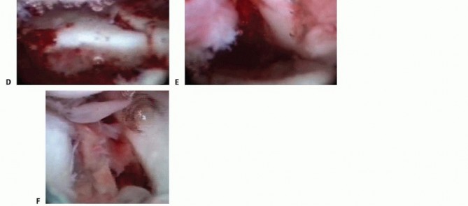 The joint will often be filled with synovitis and fibrin debris. A shaver is placed into the 6R position, and the joint is cleared of the debris to obtain adequate visualization.