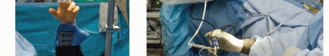 The hand is placed into traction, and standard 3-4 and 6R portals are developed as previously described.