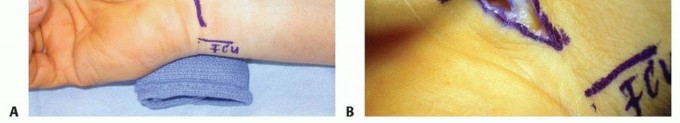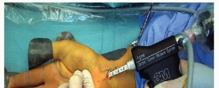 CTR surgery is performed with the arm outstretched on a hand table.Pneumatic tourniquet use facilitates accurate identification of critical anatomic structures. Loupe magnification is recommended.Anesthesia can be by general anesthesia or regional anesthesia such as an axillary block or Bier block.P.871Experienced surgeons can perform CTS safely under wrist block or local infiltration with or without a light anesthetic.