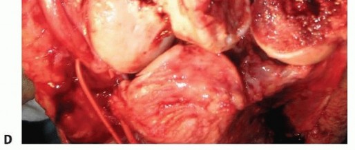 TECH FIG 3 •(continued)D. Comminuted distal humeral fracture in an osteoporotic elderly woman, with CT imaging confirming significant articular comminution. This is the view through the triceps split.