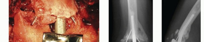 Indications ▪ A complete history and physical examination should be performed, with specific questions about any bone mineral density problems and healing tendency.1.Care must be taken to address associated pathology at the elbow, wrist, and shoulder.Planning ▪ The surgeon should consider fracture osteosynthesis when the patient has adequate bone stock and places high demand on the elbow.2.Arthroplasty should be available in the physiologically older and lower demand patient, with a view to converting to an acute arthroplasty if osteosynthesis is not possible intraoperatively.Exposure ▪ Initial definition and protection of the ulnar nerve are important. Careful dissection of the nerve from the cubital tunnel restraints will allow freedom to move the nerve without risking traction injury during the remainder of the procedure.3.If the exposure involves removing the triceps from its ulnar attachment (Bryan-Morrey approach), the site of Sharpey fiber attachment should be marked and reattached anatomically.4.During a triceps sparing approach, the tendon attachment to the olecranon must be carefully preserved.Inspection ▪ A thorough inspection of the ulna and radial articular surface should be performed to investigate the possibility of a hemiarthroplasty replacement in the appropriately selected younger patient.5.The surgeon should observe the state of the ulnar nerve and muscles around the elbow (especially triceps and brachialis); this will help to explain altered nerve function in the former and weakness and possible myositis ossificans and stiffness in the latter.Bone preparation1.If the humeral columns are intact, then an attempt at preservation should be made, with their extensor and flexor mass attachments, during a total elbow replacement.Implantation ▪ When planning length and implantation, the surgeon should pay careful attention to the tension of the brachialis and triceps. These muscles need appropriate tension to function well, but if overtensioned, the elbow will be stiff, and if undertensioned, the elbow will be weak.1.Hemiarthroplasty—plan to use an implant that is appropriate for the patient, for example, if younger and more active, may need to convert to a total replacement in the future, hence a “convertible” implant is an option.2.Hemiarthroplasty—avoid over- or understuffing or over- or undersizing the joint, with fluoroscopic examination after trial implantation.3.When an ulna osteotomy approach is chosen for DHH, prior to performing the osteotomy, place the plate onto the ulna, and predrill the screws. This saves time at the end of the case.|Wound ▪ Drains should be used at the discretion of the surgeon. If a drain is not used, the closure surgeon should pay close attention to hemostasis, and for the first 12 hours, amoderately tight bandage should be used to avoid hematoma formation. The dressing is removed on postoperative day 2.Rehabilitation ▪ With triceps reattachment, the surgeon should be cautious to avoid overzealous rehabilitation for fear of compromising triceps healing, with subsequent avulsions or extension weakness.|------