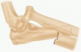 TECH FIG 7 • Malunion of the ulna with resulting apex dorsal angulation results in dislocation of the radial head.