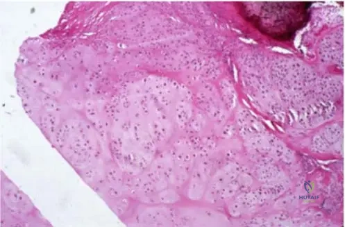 A pathologist is examining a biopsy specimen from a suspected enchondroma in a 17-year-old patient.