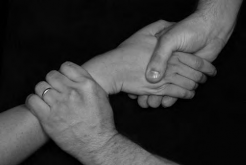 Facing the patient, one of the examiner’s thumbs is placed over the palmar aspect of the capitate bone reinforced with the thumb of the other hand. The fingers of both hands are then wrapped around the dorsum of the patient’s hand ensuring the wrist is supported in a neutral position and taking care with the handhold not to involve the patient’s thumb.