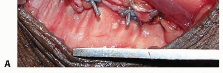 TECH FIG 3 • A. Retinacular closure. The extensor retinaculum is closed deep to the EPL with a nonabsorbable suture. B. Skin closure. The skin is closed with a horizontal mattress stitch to evert the skin edges.