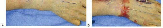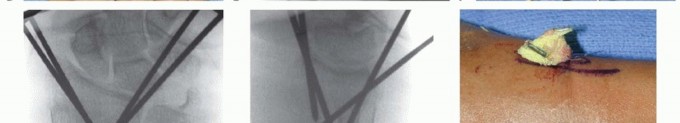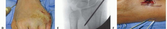 Indications ▪ Determine stability1.Determine comminution and supplement fixation with external or internal fixation as necessary.Surgical approach1.Make skin incisions for pin placement to avoid sensory nerves, tendons, and crossing veins.2.Obtain adequate exposure of the radial sensory branch at forearm and hand to avoid injury.Hardware placement3.Choose pins of appropriate diameter.4.Supplement fixation with pins using external or internal fixation as necessary.5.Do not leave pins more than 1 to 2 mm out of the cortex, and keep all pins extra-articular.6.If placing the proximal metacarpal pin in metaphyseal bone, ensure that three cortices are penetrated.7.Do not back out conical pins because fixation will be lost.8.Evaluate the DRUJ after fixation to determine stability.9.Subcutaneous pins are more costly to remove because that requires a second procedure, but they have a lower infection rate. Therefore, if fixation is needed for an extended period, bury the pins.10.Overdistraction of the carpus must be avoided because it is associated with chronic pain-mediated syndromes and nonunion.Postoperative management1.Allow for adequate immobilization.2.Encourage early range of motion of the fingers, elbow, and shoulder whenever possible.3.Educate the patient regarding appropriate pin care.4.Begin strengthening only after healing is complete and range of motion is maximized.