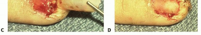 TECH FIG 2 •(continued)C. Nail plate being placed back into fold. D. Completed nail bed laceration repair.