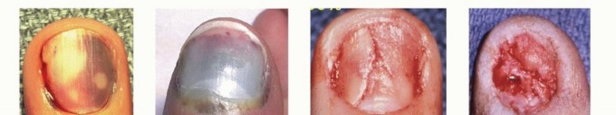 - Zook EG, Guy RJ, Russell RC. A study of nail bed injuries: causes, treatment, and prognosis. J Hand Surg Am 1984;9(2):247-252.