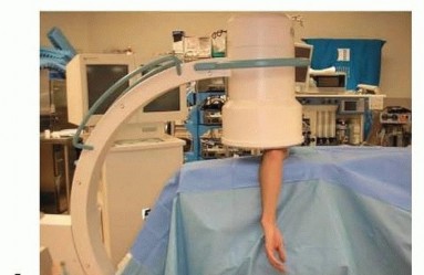 FIG 5 • A,B. Patient positioning for distal humerus fractures. (Courtesy of Samir Mehta, MD.) The contralateral arm is flexed at the shoulder and elbow to 90 degrees and placed on an arm board that is rotated so it is flush with the bed. This arm is then secured to the arm board.The operative arm is laid over a radiolucent arm board or paint roller so that the elbow is flexed 90 degrees (FIG 5).C-arm is brought in to assure that AP and lateral x-rays are adequate. The arm is then prepped and draped sterilely.A sterile tourniquet is used if one is desired.A “brain bag” is placed under the arm to be used to catch any blood or irrigant that comes from the field. The Bovie and suction are also placed in this bag for use.