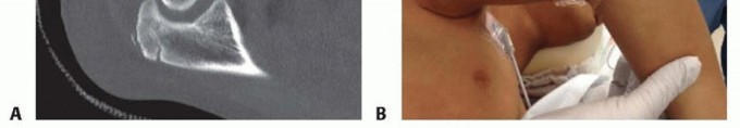 Open injuries should be addressed surgically within 24 hours; closed injuries may be addressed semielectively.Attention is given to the distal radius; “floating elbows,” in which both the distal humerus and distal radius and/or ulna are affected, are not uncommon. These injuries should be identified early, as they are at increased risk for compartment syndrome.The soft tissue envelope is an important consideration. Fracture blisters (see FIG 3B) can be present, which can compromise the sterility and the closure of the procedure.The vast majority of T-condylar humerus fractures require operative treatment. In younger children, a percutaneous or mini-open approach may be possible.In older children and adolescents, an open posterior approach offers direct visualization and anatomic reduction and fixation of fracture fragments.