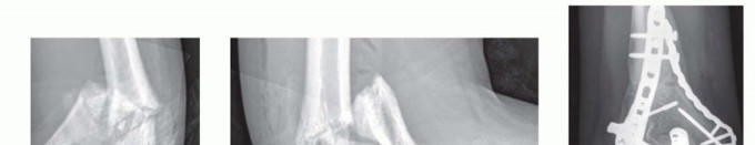 High-quality AP and lateral radiographs are mandatory prior to surgery.Internal and external oblique views may be useful in identifying columnar comminution. CT scan can be useful in identifying coronal shear fragments.Method of fixation should be chosen by patient age, degree of displacement, and amount of comminution.Specialized distal humeral plating systems are available from several different manufacturers to allow either bicolumn or “90:90” plating.
