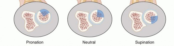 FIG 1 • The safe zone is a roughly 90-degree arc of the radial head that does not articulate with the ulna in the PRUJ with full supination and pronation. With the wrist in neutral rotation, the safe zone is anterolateral.