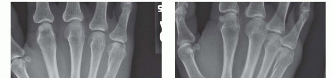 The posteroanterior (PA) view can show shortening, especially relative to the adjacent metacarpals. Fracture angulation can be seen on the lateral view but is often best seen on the oblique view. Fractures of the base of the fifth metacarpal are best seen on the pronated oblique view.Specialized views of the metacarpal head can show the volar aspect (Brewerton) or the dorsal aspect (skyline).Traction views in the anesthetized patient may help elucidate pattern and extent of injury.Computed tomography (CT) scan can help in extensively comminuted fractures or articular injuries.