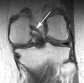 Figure 21 shows a coronal T1-weighted MRI scan of the knee. The arrow indicates what anatomic structure? ](http://www.orthobullets.com/anatomy/10120/medbullets-onboarding--draft-html)