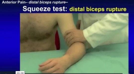 Video 2 shows the squeeze test for a biceps tendon rupture. This test