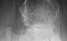 Figures below depict the radiographs obtained from a 60-year-old man with instability and pain 1 year after