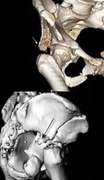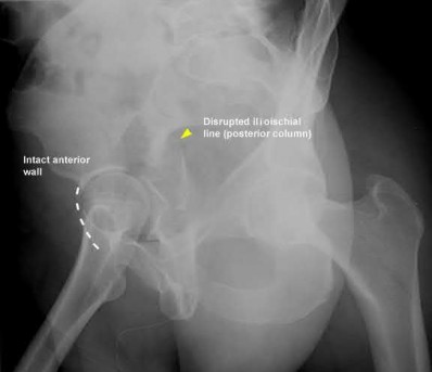Figure A shows an axial pelvic CT cut with a posterior wall acetabular fracture. Incorrect answers: