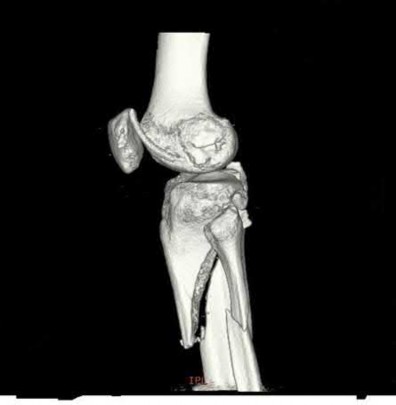 1) Irrigation and debridement of open tibia plateau fracture and traction stabilization of femur and tibia plateau fractures