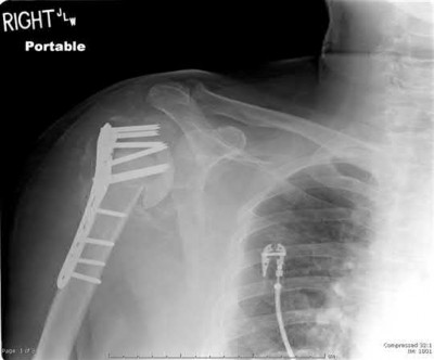 Malunion and soft tissue compromise are two complications with a high association to proximal third tibial shaft fractures. The most common deformity seen in a malunited fracture is valgus and procurvatum due to the pull of the pes anserine and the patellar tendon, respectively. Numerous techniques exist to help prevent this deformity including the use of blocking screws, unicortical plating, and the universal distractor. If blocking screws are employed they should be placed on the concavity of the expected deformity, which in this case would be posterior in the sagittal plane and laterally in the coronal plane of the proximal fragment. Once reduction is obtained, if the blocking screws are left in place they have the added benefit of creating a stronger construct.