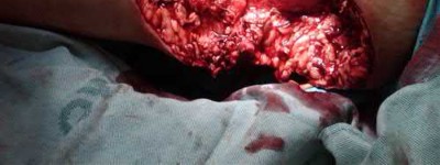 5) Irrigation and debridement with external fixation of tibia plateau fracture and external fixation of femur fracture