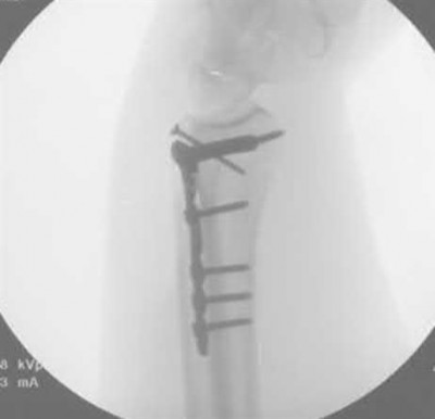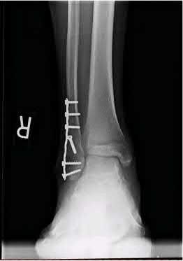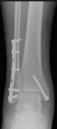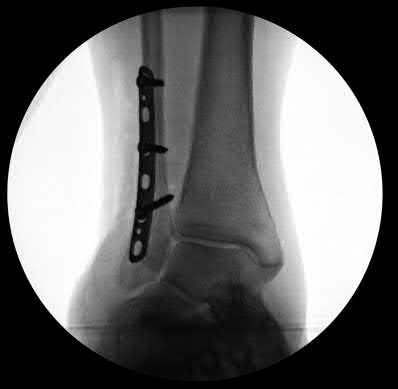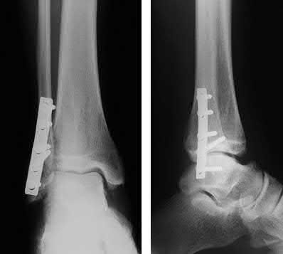 Vallier et al performed a randomized prospective study to compare plate and nail stabilization for distal tibia shaft fractures by assessing complications and secondary procedures. One-hundred and four patients were randomized to either reamed intramedullary nailing, or medial distal tibia plate fixation.