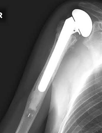 Answer 2: Intraoperative coagulase-negative staph. cultures are likely contaminant. The patient denies infectious symptoms and inflammatory markers for infection are negative. In addition, the radiographs do not suggest infection as there is no cortex irregularity, bone lysis, or implant loosening.