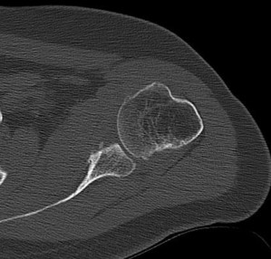 Figure 84 is the glenoid CT scan of a 20-year-old man who dislocated his shoulder anteriorly while playing football. He had persistent instability 2 months after the injury, but he did not have a sulcus sign or posterior instability. He underwent an arthroscopic Bankart repair with 4 bioabsorbable anchors with simple sutures through the labrum and capsule.