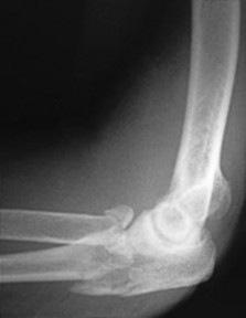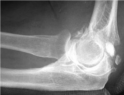 DISCUSSION…This is a simple (no associated fracture) elbow dislocation. Such dislocations can be treated with closed reduction followed by mobilization after 5 to 7 days to avoid stiffness, provided the elbow is stable through a full arc of motion at the time of reduction. If the elbow is unstable but has a short arc of stability, then using a hinged brace in the stable arc may be considered. (Note: It may be necessary to splint the elbow in pronation if the MCL is intact and the LCL is disrupted or in supination if the LCL is intact but the MCL disrupted.) Surgical reconstruction of the LCL and MCL may be required only if the elbow does not have a stable arc at the time of reduction. If unstable after reconstruction, application of a hinged external fixator may be considered.