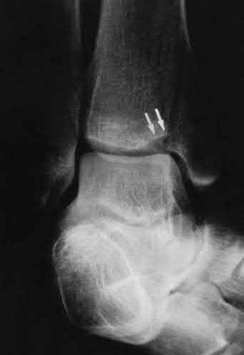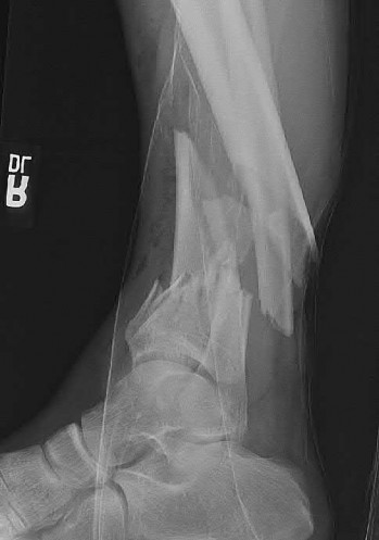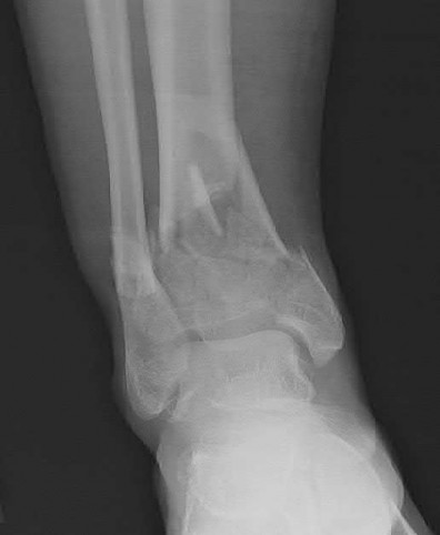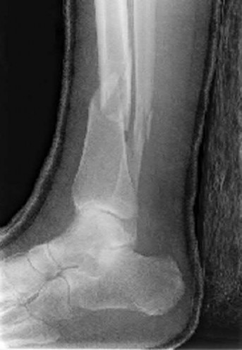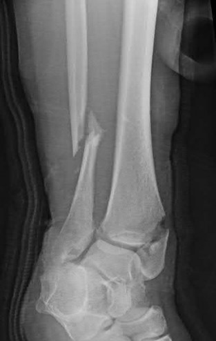 Figures A and B show an extraarticular distal tibia fracture with distal fibula fracture.