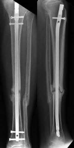 Bhandari et al. conducted a prospective, randomized, blinded comparison of 622 patients who had reamed nailing, and 604 who had unreamed nailing. For closed fractures, a significantly greater number in the unreamed group required bone grafting, implant exchange and dynamization. There was no difference in groups for open fracture nailing.