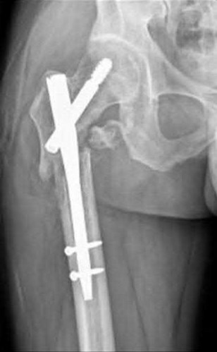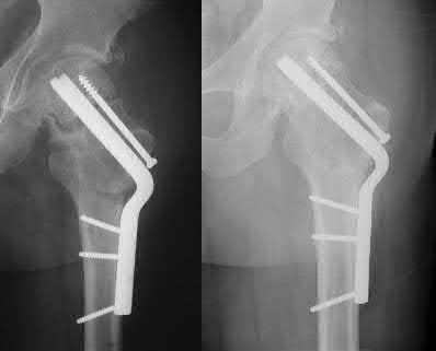 Hartford et al. describe fixing intertrochanteric osteotomies with dynamic hip screws in 8 patients with femoral neck fracture (Pauwels type III) nonunion. The fracture plane decreased from 68° to 41°, and hip scores increased. Seven fractures healed (1 patient died). They recommend this technique for reliable fixation of intertrochanteric valgus osteotomies for femoral neck nonunion.