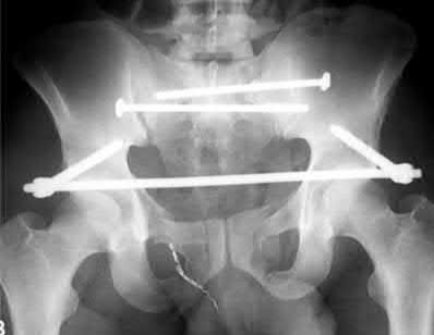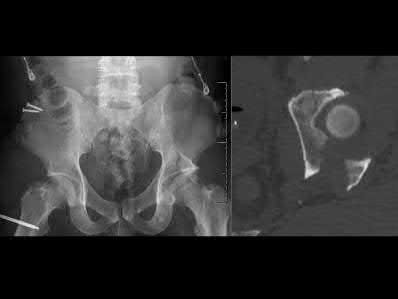 Bartkiw et al. reviewed 2808 GSW and found 1235 associated fractures including 42 fractures of the hip and pelvis. They performed 10 orthopaedic procedures on 7 patients. All fractures healed with no pelvic ring instability or chronic osteomyelitis. They recommend orthopedic intervention for intraarticular projectiles or bone fragments, and reconstruction of the hip and acetabulum.