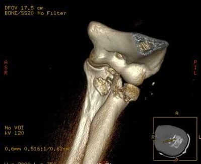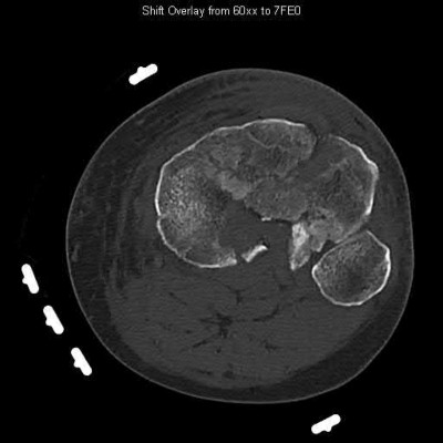 Comminuted fracture pattern