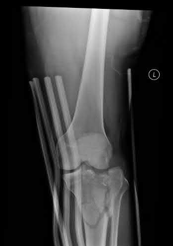 Figure A shows an isolated tibial shaft fracture. Incorrect Answers: