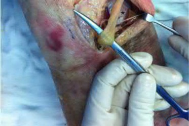 Illustration V is a video showing a through-knee amputation. Incorrect Answers: