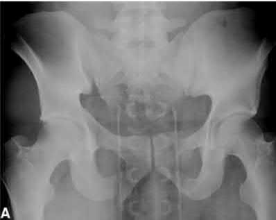 Figure A is an AP radiograph demonstrating a displaced femoral neck fracture. Incorrect Answers: