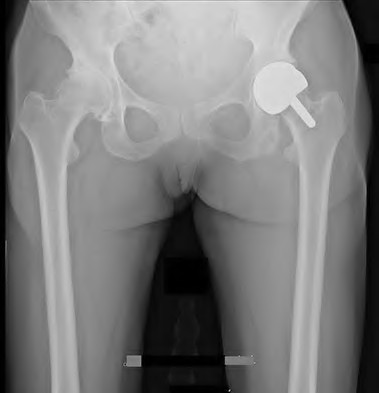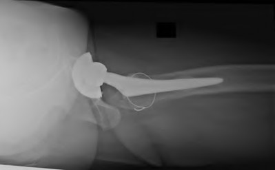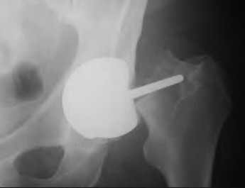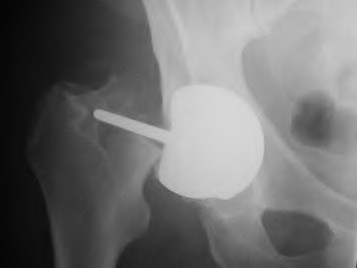 A 67-year-old active man returns for routine follow up 12 years after hip replacement. He has no hip pain. Radiographs revealed a