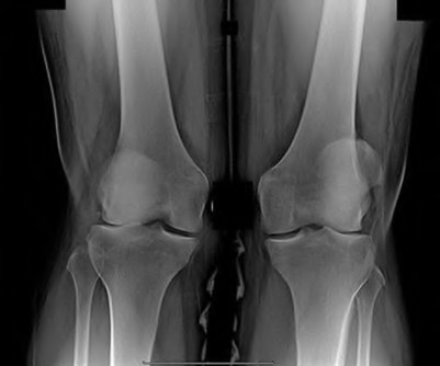 A 45-year-old postmenopausal smoker with a body mass index (BMI) of 22 has had severe knee pain for the past year. The pain has been progressing and the patient is now only able to perform activities