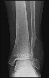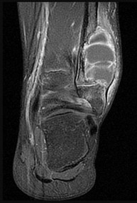 Figures 94a through 94f are the radiographs and MR images of a 16-year-old boy who experiences left ankle pain with activity. What is the most likely diagnosis?