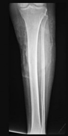 Figures 9a through 9d are the anteroposterior and lateral radiographs, CT scan, and technetium bone scan of a 12-year-old boy who has experienced 7 months of pain in his lower leg. The pain limits his ability to participate in sports and he is having difficulty sleeping. He is afebrile, and laboratory study findings including an erythrocyte sedimentation rate, C-reactive protein, and complete blood count are within normal limits.