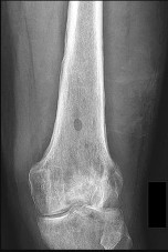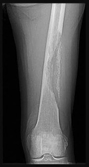 This patient’s radiographs, MR imaging, and histologic examination are diagnostic for low-grade chondrosarcoma, which is treated with surgery alone. In this patient, the tumor is entirely intramedullary. Both wide resection and extended intralesional curettage with intraoperative surgical adjuvant treatment are treatment options. Chemotherapy and radiation are not beneficial in the treatment of low-grade chondrosarcoma.