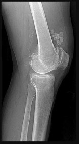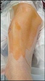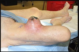 chemotherapy. Wide resection, endoprosthetic proximal tibia replacement, a medial gastrocnemius flap, and a split-thickness skin graft were performed. The preferred postsurgical knee rehabilitation regimen is