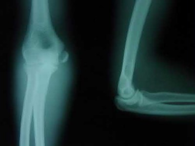 Figure A shows a radial head fracture. Figure B shows an elbow dislocation.