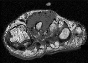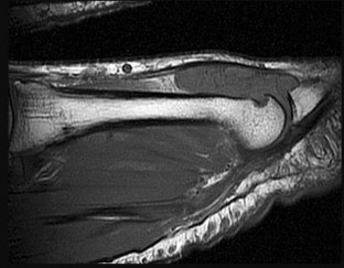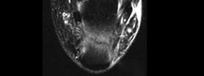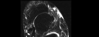 The MRI scans show a distal biceps tendon avulsion with significant retraction. When addressing these injuries, a single-incision approach has been associated with an increased risk of lateral antebrachial cutaneous nerve injury. A two-incision approach has been associated with an increased risk of heterotopic ossification, second surgeries and posterior interosseous nerve injury.