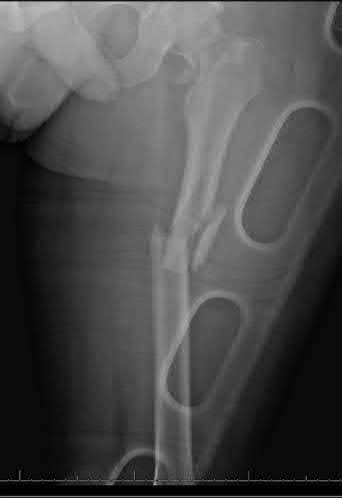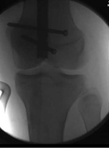 REFERENCES: Kassab M, Zalzal P, Azores GM, et al: Management of periprosthetic femoral fractures after total knee arthroplasty using a distal femoral allograft. J Arthroplasty 2004;19:361-368.