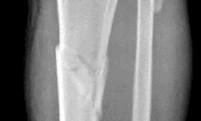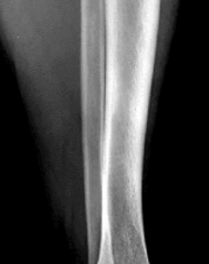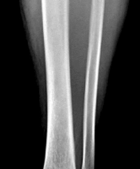 A 53-year-old man sustains a fall while skiing. He experiences immediate pain and deformity in his lower leg just above his ski boot top. Radiographs of his left lower leg are shown in Figures 1 and