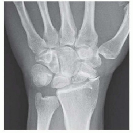 Patients with scaphoid fractures who present with delays (>4 weeks) in both diagnosis and treatment can develop a nonunion. Other risk factors for nonunion include proximal fracture location, comminution, fragment displacement or angulation, and associated carpal instability. As with other fractures, smokers are at increased risk for nonunion.Acute scaphoid fractures with fracture fragment displacement more than 1.0 mm, an intrascaphoid angle more than 45 degrees, or a height-to-length ratio more than 0.65 have a higher incidence of nonunion.18Because the scaphoid serves as a bridge between the proximal and distal carpal rows, a scaphoid fracture can severely disrupt wrist biomechanics and normal loading patterns.Scaphoid fractures disrupt the normal linkage between the two rows, and thus the proximal fragment remains with the lunate via the scapholunate ligament and the distal fragment flexes unimpeded.Scaphoid collapse reduces the carpal height and allows the lunate to rotate in a dorsal intercalated segmental instability (DISI) pattern.Scaphoid nonunion advanced collapse (SNAC) arthritis develops from the altered biomechanics.