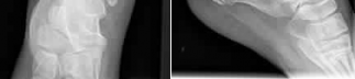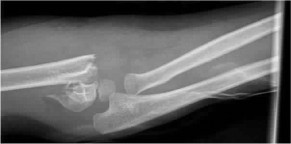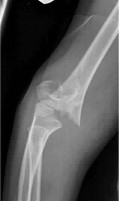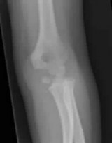 An 11-year-old boy reports the acute onset of elbow pain and swelling after pushing his brother. The patient's mother and a younger sibling have experienced numerous fractures. You note that the patient and his mother have blue sclera and normal-appearing teeth. A radiograph of the elbow is shown in Figure 60. This patient's disorder is most likely the result of ](http://www.orthobullets.com/pediatrics/4102/osteogenesis-imperfecta)Review Topic