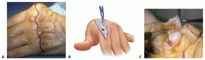 The MCP joint is approached from dorsally with a midline incision.The PIP joint may be approached from either the dorsal or volar approach.